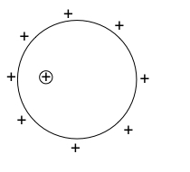 The diagram represents a positive test charge in a hollow sphere.