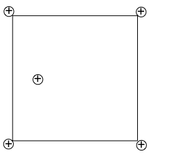 The diagram represents 4 charges placed on the corners of a square and a test charge.