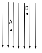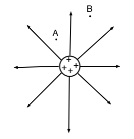 If the field at A has magnitude E, the field at B ill have magnitude:
