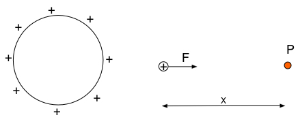 The diagram represents a 2C test charge so far from a sphere of charge that there is no force experienced by it.
