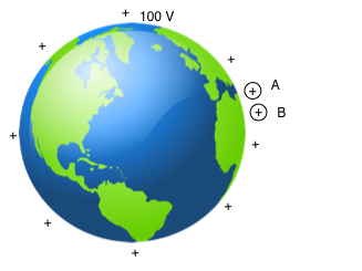 The potential at the Earth´s surface is 100 V and the potential difference between A and B is 2 V.