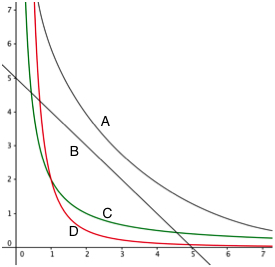 Which of the following lines gives the correct relationship between electric potential of a point charge and distance from it.