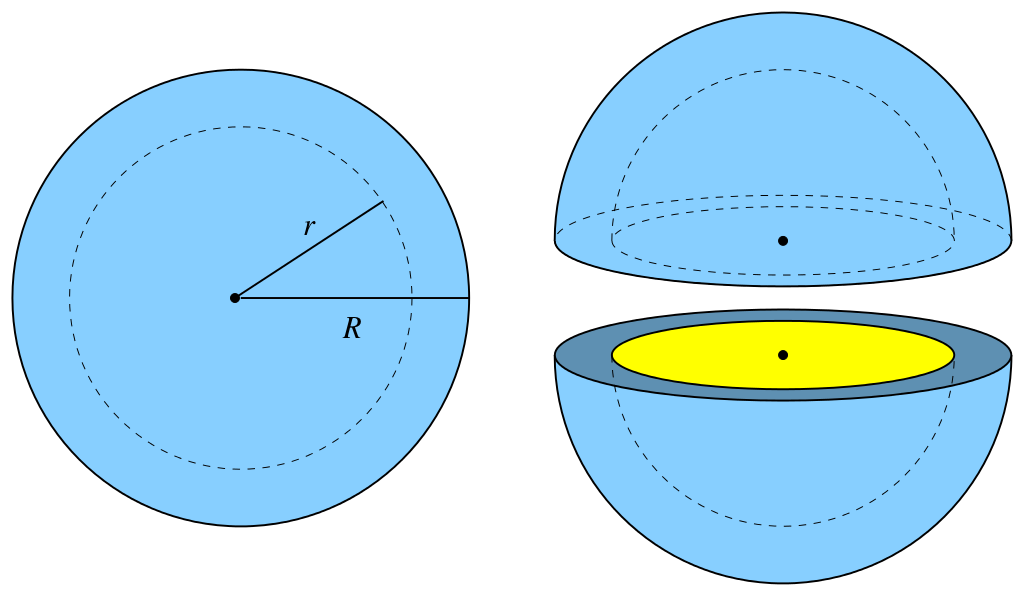 \(V_e=k{q\over r}=k{Qr^2\over R^3}\)