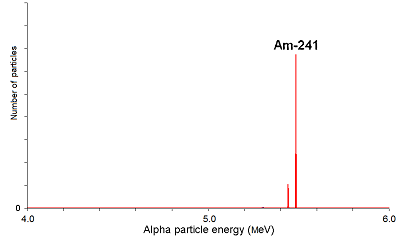 From this spectrum we can deduce that there are two alpha energies: one at 5.5 MeV and the other at about 5.45 MeV.