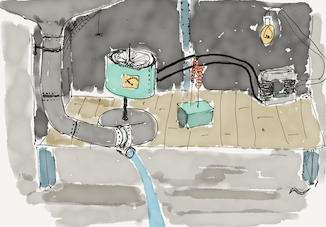 In a pumped storage system, excess electricity is used to pump water back up the mountain. This does not produce energy but stores it as the water can be used to drive a turbine when high demand is anticipated.