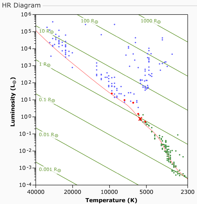 A Hertzsprung-Russell (HR) diagram plots stars according to their luminosity (vertical axis) and surface temperature (horizontal axis). Unlike most graphs in Physics, the HR diagram is not used to obtain a perfect correlation but is instead used to explore the evolution of stars.