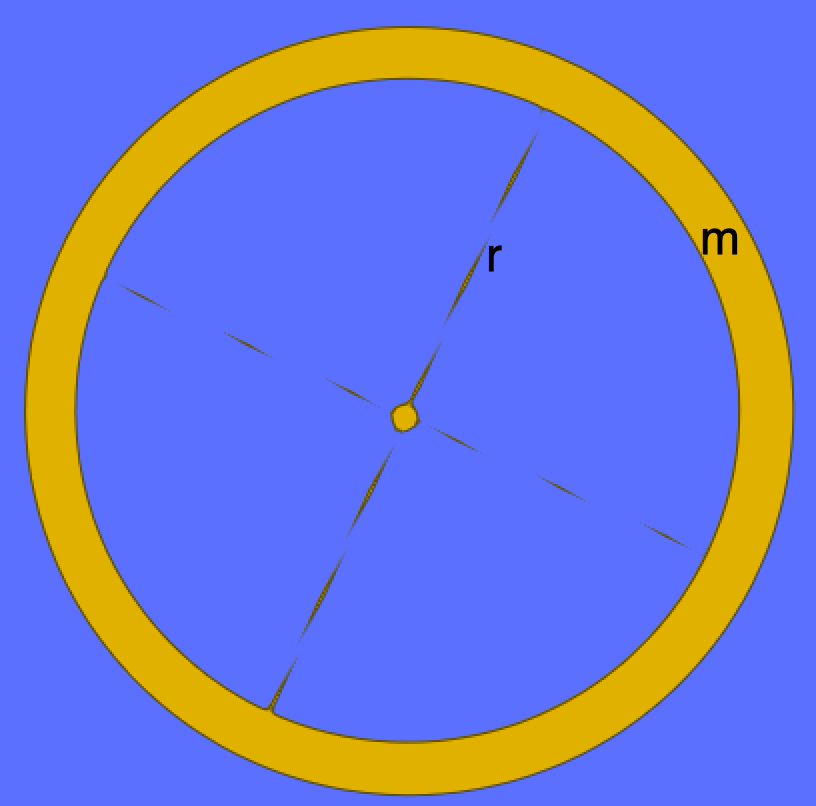 For a loop rotating around its centre, all particles can be assumed to be a constant distance from the pivot and so the total mass is at the radius: \(I =mr^2\)
