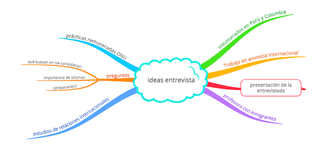 Es importante que antes de escribir, hagas una lluvia de las ideas que quieres desarrollar. Te ponemos un ejemplo de cómo podría ser el mapa mental.