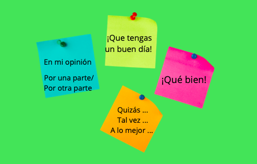 En estas secciones, vamos a incluir el vocabulario activo, en el mismo incluiremos expresiones idiomáticas que son las que harán que tu español sea natural y que fluya. Muchas de estas expresiones son colocaciones. Palabras que se combinan de forma estable y que son difíciles de predecir, por eso es importante que las aprendas juntas. Además, es más fácil para tu cerebro conectarlas y así adquirirlas.