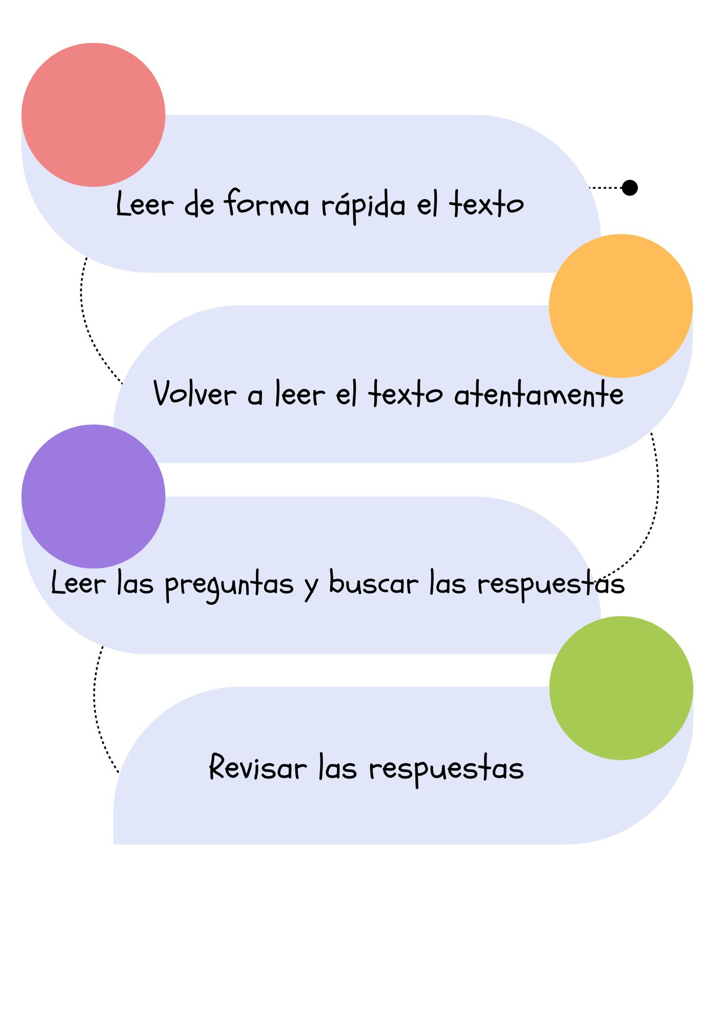 Here you also have an example of the reading following the four steps so you get the whole picture. In the other sections we will study and practise one by one.