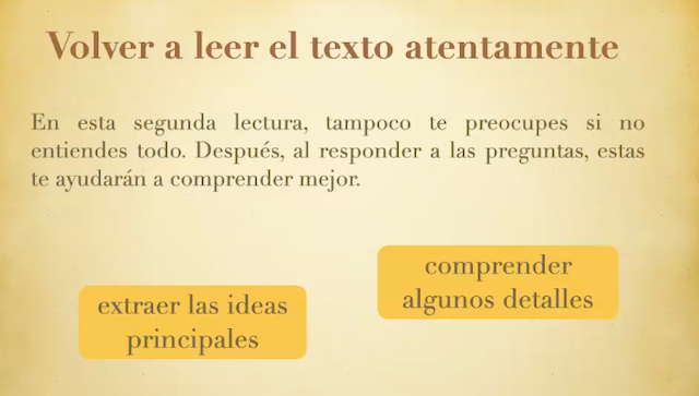 En esta segunda lectura, gracias a la primera, ya intentas sacar las ideas principales del texto y, algunos detalles. No te preocupes si no entiendes todo. Después con las preguntas, lo lerás todo otra vez y te fijarás en más detalles.