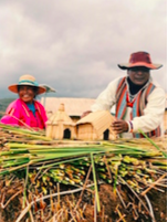 Visitando el lago Titicaca, a las orillas de Puno esta mañana. Aquí viven unos indígenas en las islas flotantes que construyen ellos mismos. ¡Qué interesante todo lo que nos han explicado: cómo hacen las casas, los barcos e incluso las islas! en barco y hemos comprado algunos recuerdos. #Aventuraencuzco