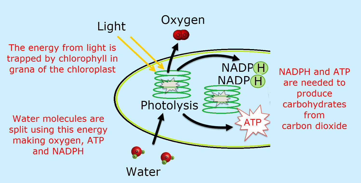 ............................................................................................................................................................ - Which molecules from photolysis carry the energy needed to produce carbohydrates from carbon dioxide in the light independent reactions of the stroma?