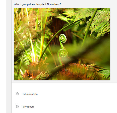 Activity 2: Self marking quiz to identify plants from each main phylum