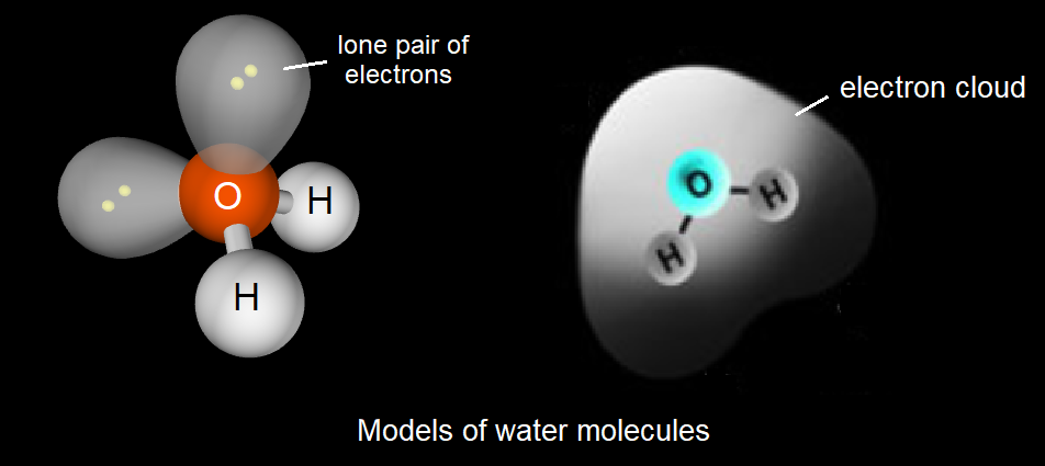 In these images what evidence is there that electrons may not be evenly distributed in water molecules?