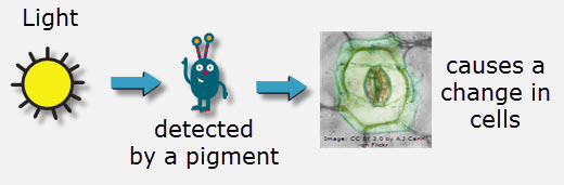 Plants can absorb light and respond to it using special pigments. We know already that guard cells open stomata in the presence of light. Seeds germinate in response to light, and flowers flower at specific times of the year controlled by the amount of light in a day (day length)a few ideas about germination