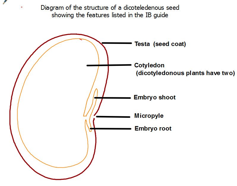 Draw a diagrams and label the five parts of a seed which can be clearly seen.