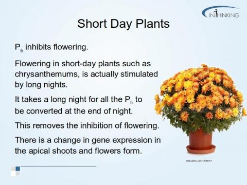 These spring flowering plants are called 'short day plants' but it is the long night which converts Pfr to Pr