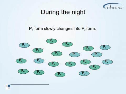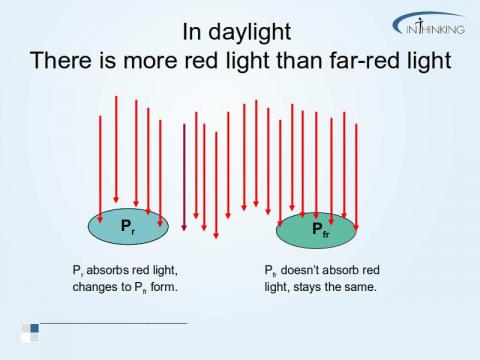 Far red absorbing phytochrome, Pfr, is formed from Pr in plant cells during exposure to red light (660 nm) in daylight.