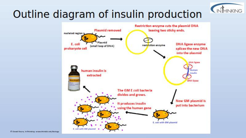 animation on making insulin to help you make introductory notes about the use of genetically modified bacteria to make human insulin. See the video clip preview below.