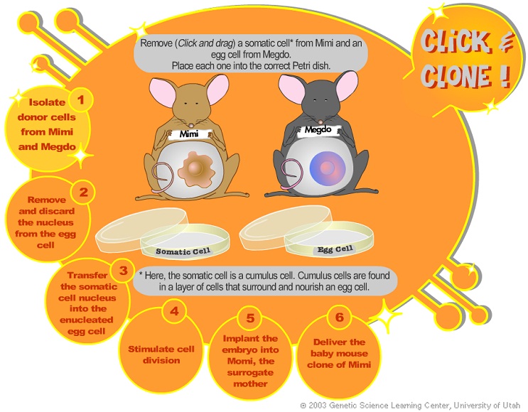 Carry out the simulation on the website below. Can you clone a mouse? What are the steps?