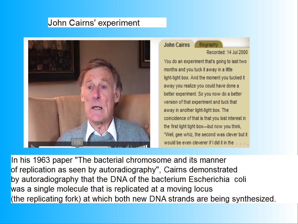 John Cairns talking about his experiments revealing the length & structure of prokaryote chromosomes