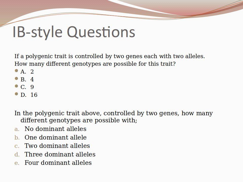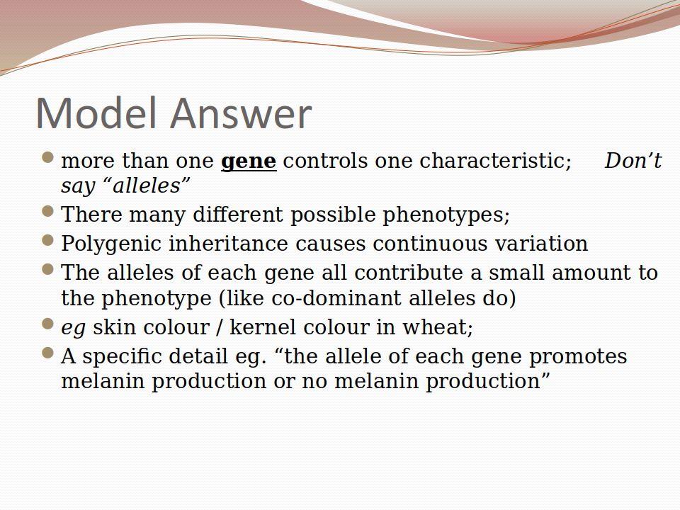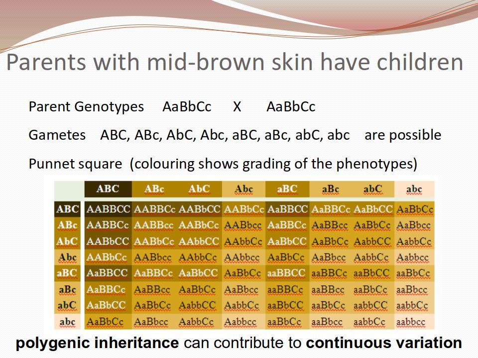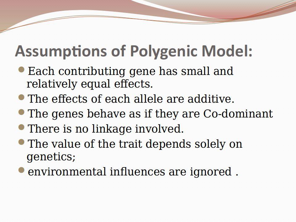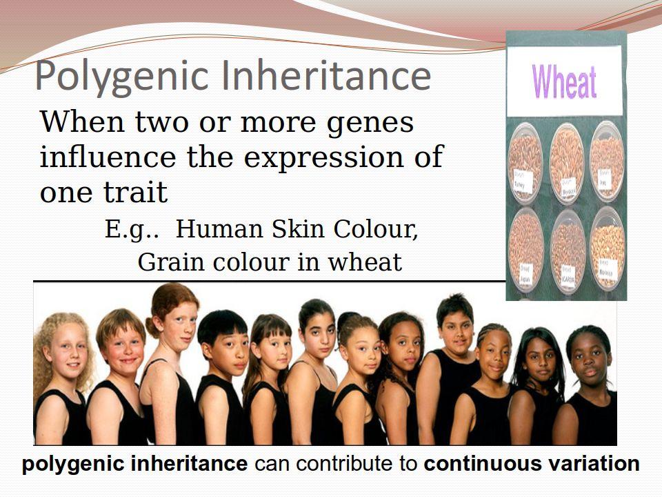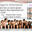 The following Polygenic Inheritance Presentation slides explain how the theory of polygenic inheritance can explain quite closely the inheritance of a large number of traits which show continuous variation.