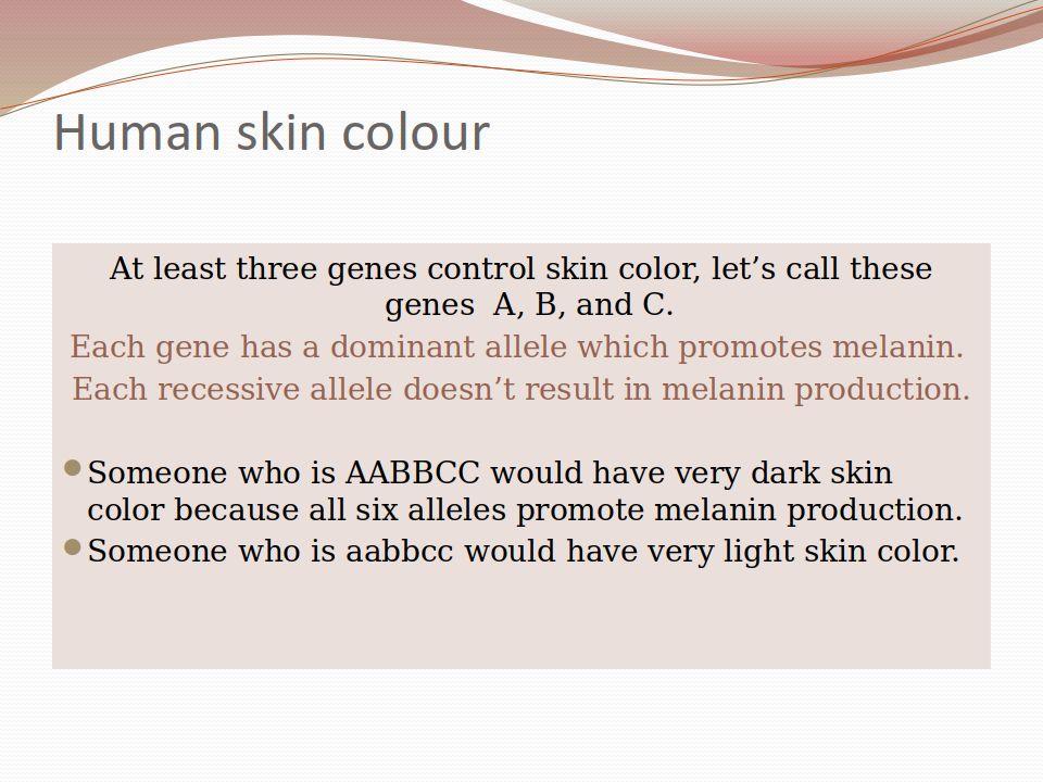 - A clear explanation of genetics of skin colour using playing cards as alleles from Tech interactive at Stanford Uni.