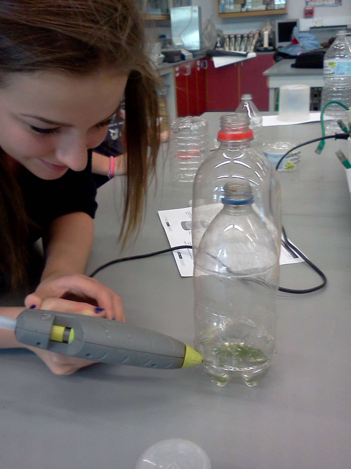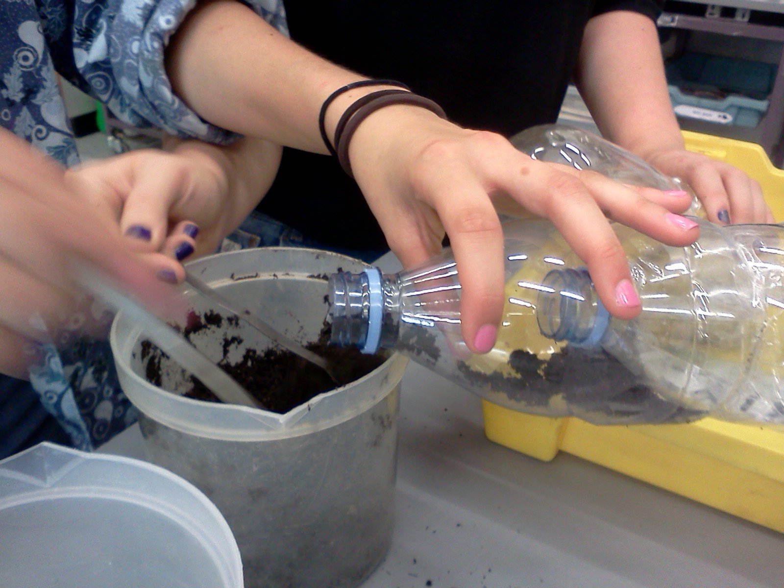 We used glue guns for the sticking and spoons / spatulas to get the soil into the middle layer.