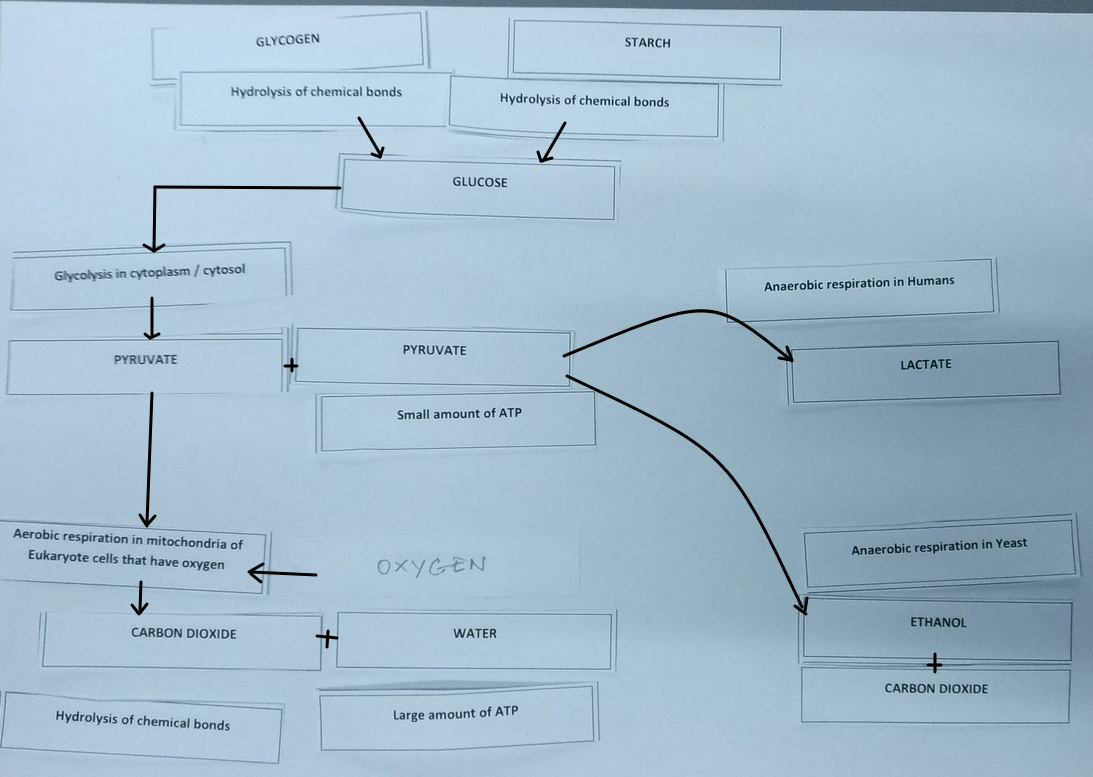 Cut out the cards on the Respiration card sort worksheet below and arrange them onto an A3 sheet. Draw arrows and write notes to explain each step in the process.