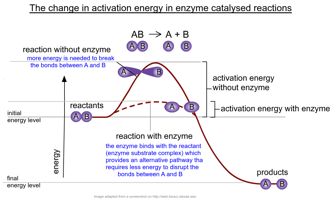 Enzymes catalyse very many reactions in all living organisms. In this activity watch on of the simulations about activation energy and enzymes then answer the questions on