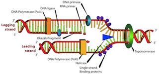 - A complex group of enzymes do DNA replication including; helicase, DNA gyrase, single strand binding proteins, DNA primase and DNA polymerases I and III.
