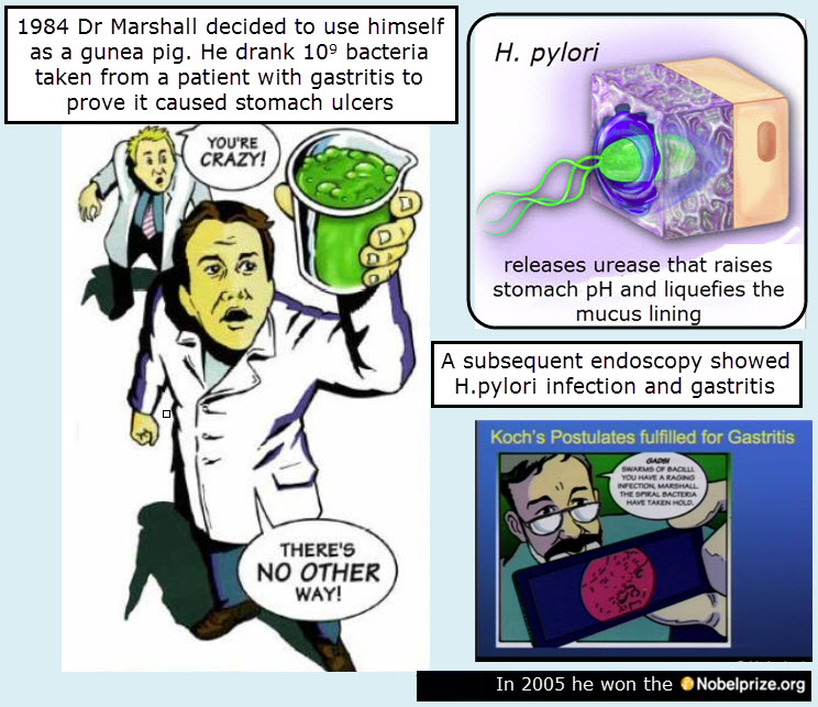 - Nobel acceptance speech by Barry J. Marshall http://www.nobelprize.org/mediaplayer/index.php?id=614