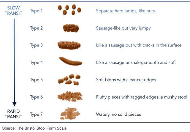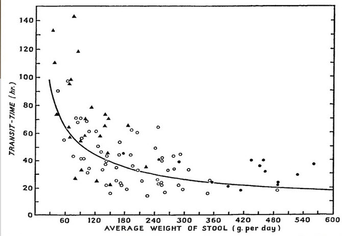 What is the relationship between transit of food though the intestines and the speed of peristalsis?