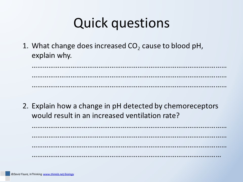 The last activity is really extension work. Can students create a simple flow diagram to explain the interactions of pH and the saturation of oxygen or the ability of the blood to transport carbon dioxide. I would be happy to include any good student examples if you wish to send them.