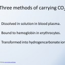 Look at the slides about the three methods of carbon dioxide transport in the blood: