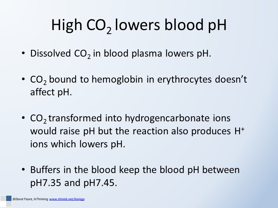 - What does CO2 do to the pH of a solution?
