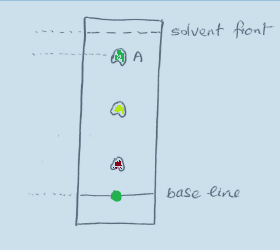 \(Rf = {distance .traveled .by .pigment \over distance.traveled. by. solvent. front}\)