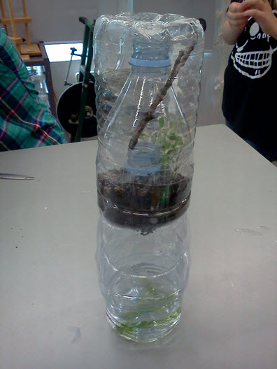 Suggest how this mesocosm could be used to investigate how the number of hours of light in a 24 hour period affects the balance of plants and animals in the mesocosm.