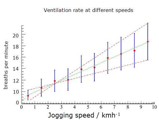 This graph shows the results of an experiment to measure ventilation rates at different joggin speeds.