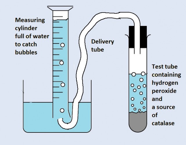 The source of catalase was a piece of liver. pH buffer solutions were added to the test tube.