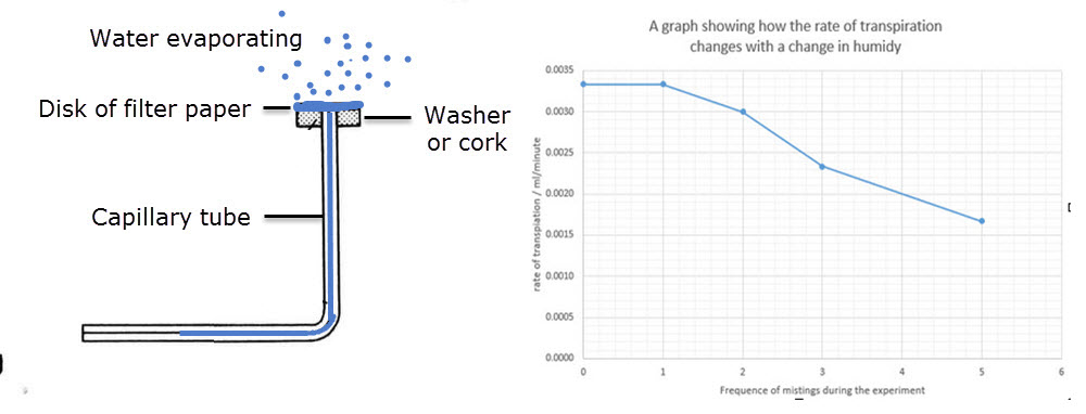 This graph shows the changes in the rate of transpiration for an experiment with different humidities.