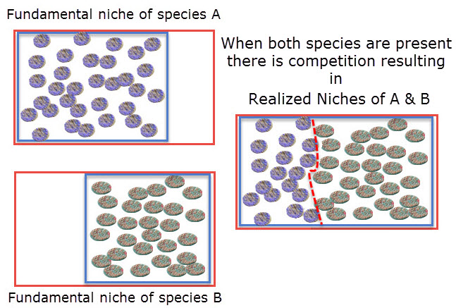 • Two species cannot survive indefinitely in the same habitat if their niches are identical.  Why not?