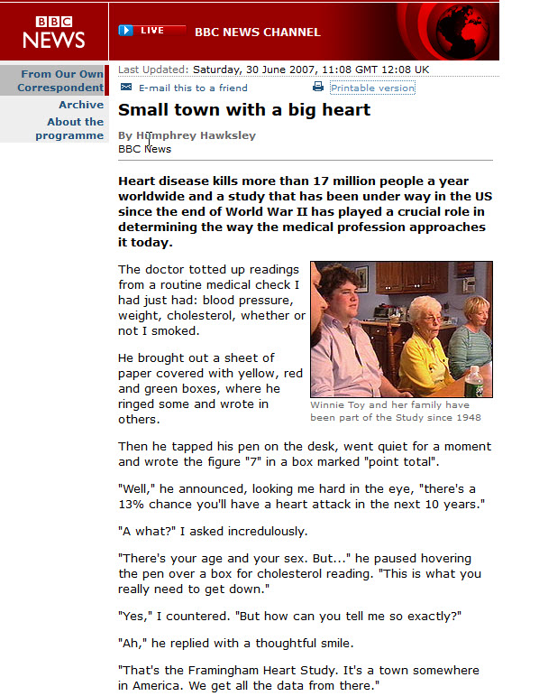 Read the Full BBC news article here and find out more about the Framingham Heart Study here.