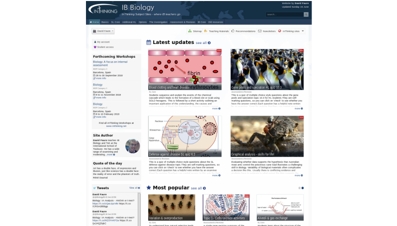 This is a short introductory video to the InThinking IB Biology website.  It covers all of the main sections of the website and the resources which they contain.  Information about how to use the student access and the qBank of questions is not included here but pages to explain these are planned for later in the summer.