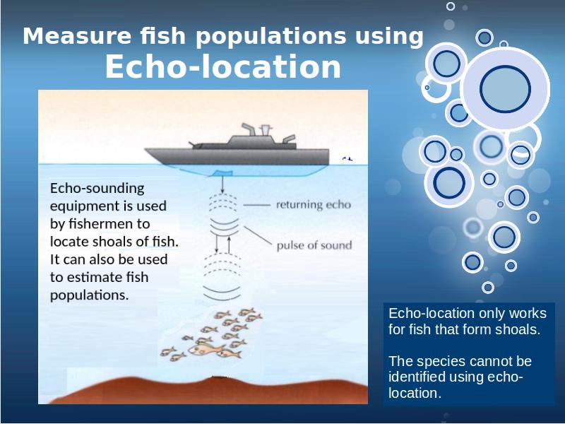 Method . . . . . Advantage . . . . . . . . . . . . Limitation . . . . . Echo-location of fish