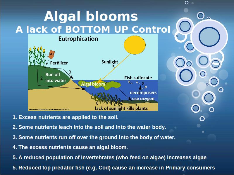 ..................................................................................................................................................................... - Describe how overfishing of a top predator can reduce the top down control of algal blooms.