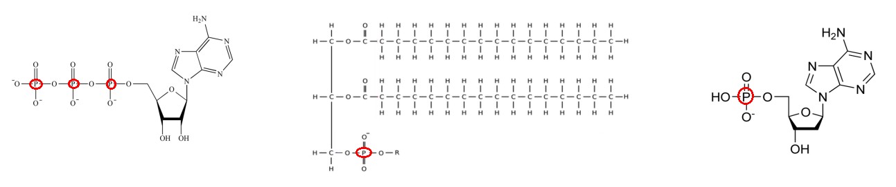 Phosphorus is required to make all the molecules shown in the diagram. Can you identify each of the molecules?