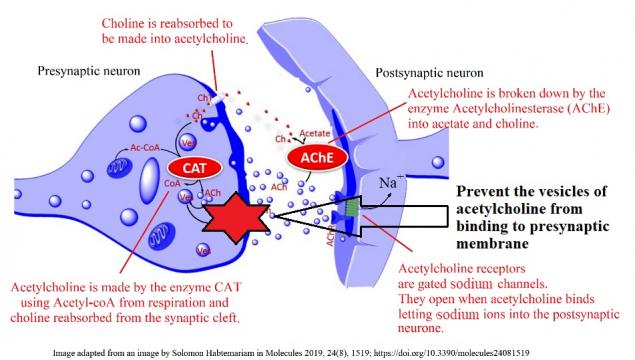 The main idea in this activity is to give students sufficient understanding of acetylcholine synapses and the methods of modifying its action in a synapse for them to be able to match the three treatments in Activity 3 with the mechanisms of action.