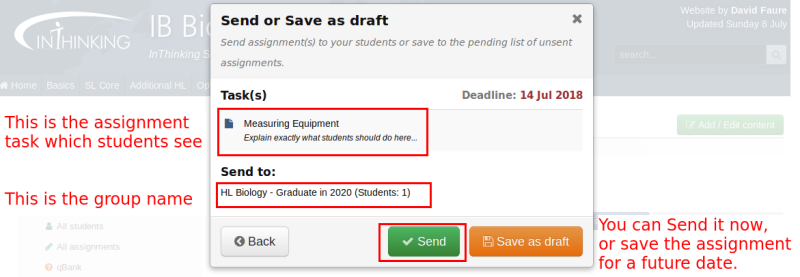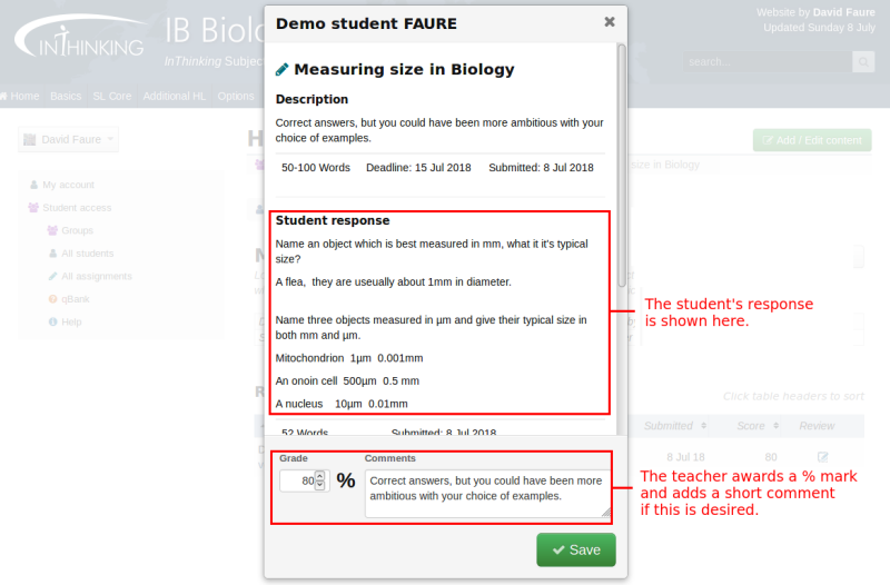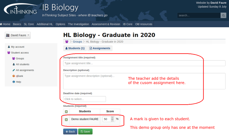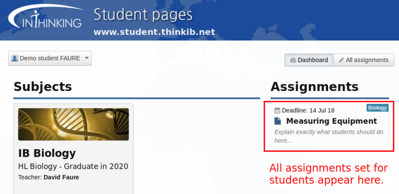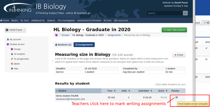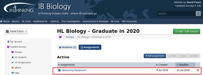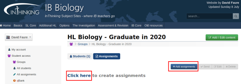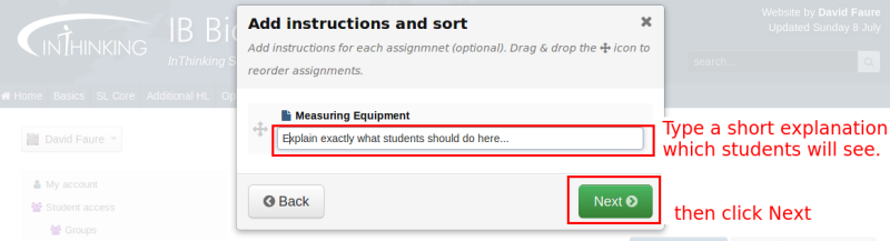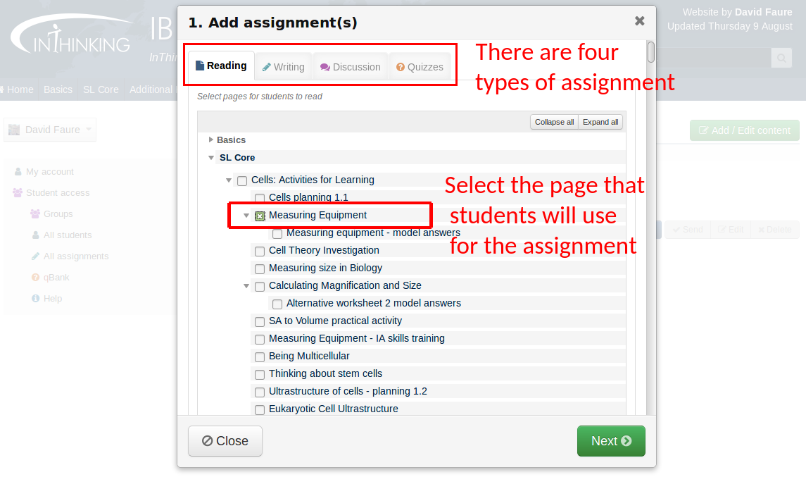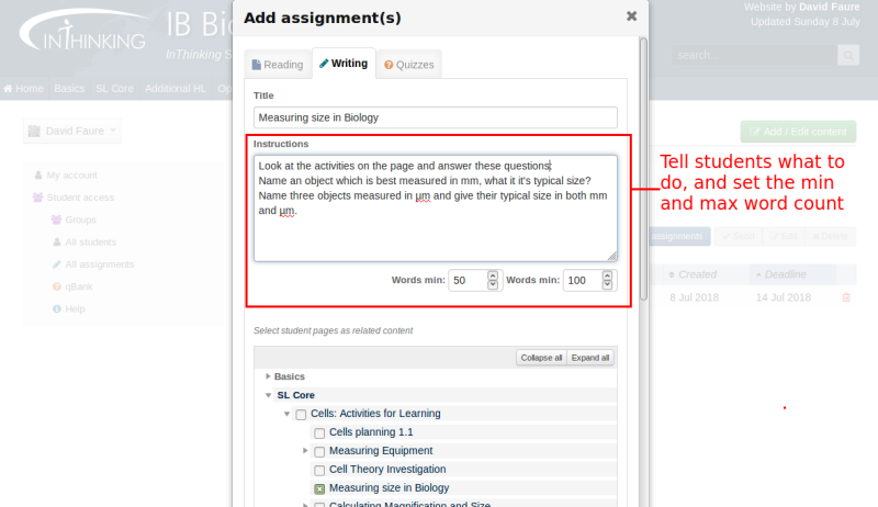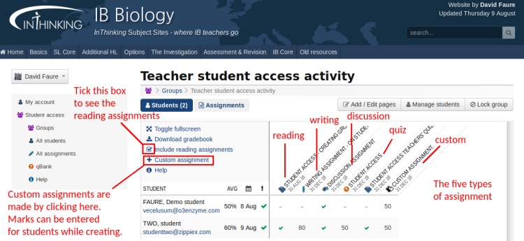 This page shows you how to set three types of assignment within the student access of the InThinking Biology website.